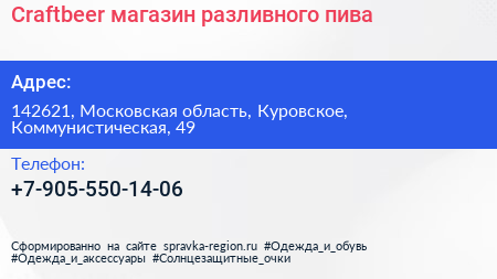 Craftbeer, магазин разливного пива по адресу 142621, Московская область, Куровское, Коммунистическая, 49 в дальнейшем Организация, размещена в следующих категориях:
