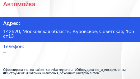 Автомойка по адресу 142620, Московская область, Куровское, Советская, 105 ст13 в дальнейшем Организация, размещена в следующих категориях: