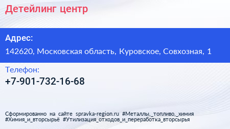 Детейлинг-центр по адресу 142620, Московская область, Куровское, Совхозная, 1 в дальнейшем Организация, размещена в следующих категориях: