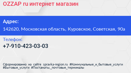 OZZAP.ru, интернет-магазин по адресу 142620, Московская область, Куровское, Советская, 90а в дальнейшем Организация, размещена в следующих категориях: