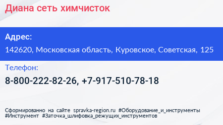 Диана, сеть химчисток по адресу 142620, Московская область, Куровское, Советская, 125 в дальнейшем Организация, размещена в следующих категориях: