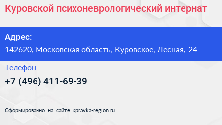 Куровской психоневрологический интернат по адресу 142620, Московская область, Куровское, Лесная, 24 в дальнейшем Организация, размещена в следующих категориях: