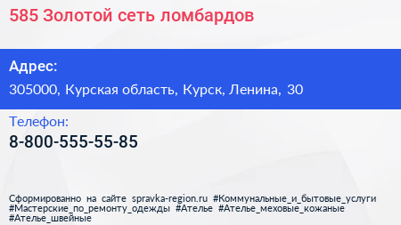 585*Золотой, сеть ломбардов по адресу 305000, Курская область, Курск, Ленина, 30 в дальнейшем Организация, размещена в следующих категориях: