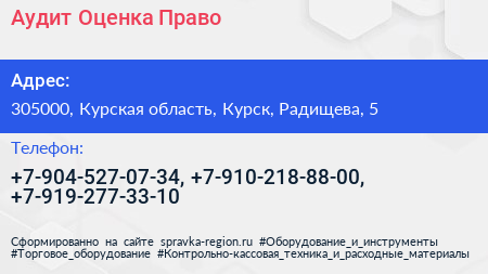 Аудит-Оценка-Право по адресу 305000, Курская область, Курск, Радищева, 5 в дальнейшем Организация, размещена в следующих категориях: