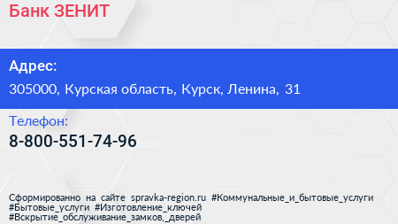 Банк ЗЕНИТ по адресу 305000, Курская область, Курск, Ленина, 31 в дальнейшем Организация, размещена в следующих категориях: