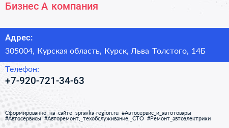 Бизнес А, компания по адресу 305004, Курская область, Курск, Льва Толстого, 14Б в дальнейшем Организация, размещена в следующих категориях: