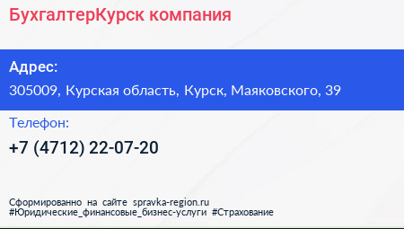 БухгалтерКурск, компания по адресу 305009, Курская область, Курск, Маяковского, 39 в дальнейшем Организация, размещена в следующих категориях: