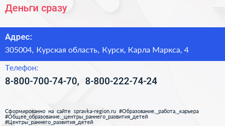 Деньги сразу по адресу 305004, Курская область, Курск, Карла Маркса, 4 в дальнейшем Организация, размещена в следующих категориях: