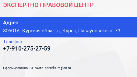 ЭКСПЕРТНО-ПРАВОВОЙ ЦЕНТР по адресу 305016, Курская область, Курск, Павлуновского, 73 в дальнейшем Организация, размещена в следующих категориях: