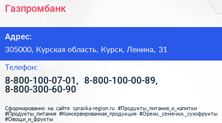Газпромбанк по адресу 305000, Курская область, Курск, Ленина, 31 в дальнейшем Организация, размещена в следующих категориях: