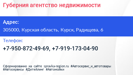 Губерния, агентство недвижимости по адресу 305000, Курская область, Курск, Радищева, 6 в дальнейшем Организация, размещена в следующих категориях: