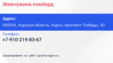 Жемчужина, ломбард по адресу 305014, Курская область, Курск, проспект Победы, 10 в дальнейшем Организация, размещена в следующих категориях: