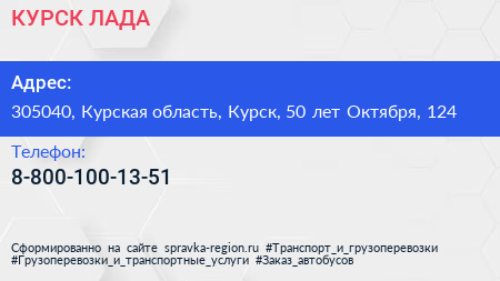 КУРСК-ЛАДА по адресу 305040, Курская область, Курск, 50 лет Октября, 124 в дальнейшем Организация, размещена в следующих категориях: