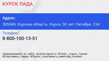 КУРСК-ЛАДА по адресу 305040, Курская область, Курск, 50 лет Октября, 114 в дальнейшем Организация, размещена в следующих категориях:
