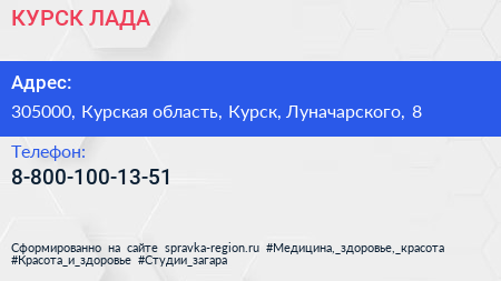 КУРСК-ЛАДА по адресу 305000, Курская область, Курск, Луначарского, 8 в дальнейшем Организация, размещена в следующих категориях:
