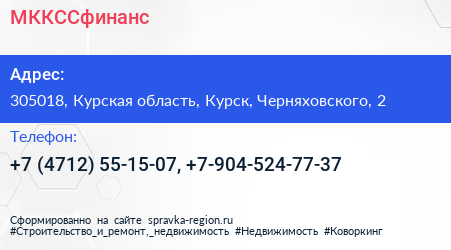 МККССфинанс по адресу 305018, Курская область, Курск, Черняховского, 2 в дальнейшем Организация, размещена в следующих категориях: