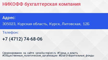 НИКОФФ, бухгалтерская компания по адресу 305023, Курская область, Курск, Литовская, 12Б в дальнейшем Организация, размещена в следующих категориях: