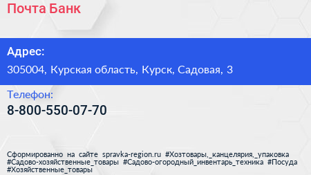 Почта Банк по адресу 305004, Курская область, Курск, Садовая, 3 в дальнейшем Организация, размещена в следующих категориях: