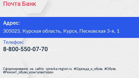 Почта Банк по адресу 305023, Курская область, Курск, Песковская 3-я, 1 в дальнейшем Организация, размещена в следующих категориях: