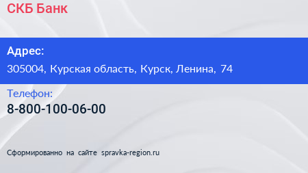 СКБ-Банк по адресу 305004, Курская область, Курск, Ленина, 74 в дальнейшем Организация, размещена в следующих категориях: