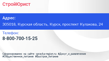 СтройЮрист по адресу 305018, Курская область, Курск, проспект Кулакова, 24 в дальнейшем Организация, размещена в следующих категориях: