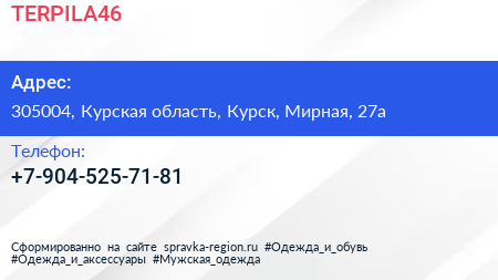 TERPILA46 по адресу 305004, Курская область, Курск, Мирная, 27а в дальнейшем Организация, размещена в следующих категориях: