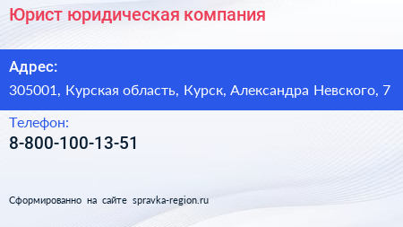 Юрист, юридическая компания по адресу 305001, Курская область, Курск, Александра Невского, 7 в дальнейшем Организация, размещена в следующих категориях: