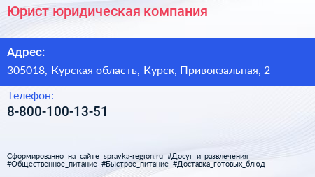Юрист, юридическая компания по адресу 305018, Курская область, Курск, Привокзальная, 2 в дальнейшем Организация, размещена в следующих категориях: