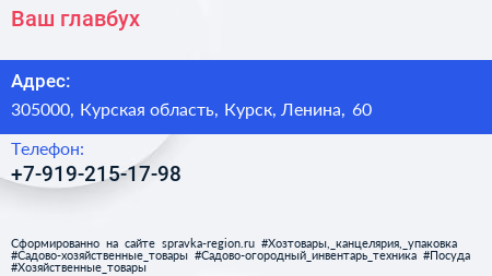 Ваш главбух по адресу 305000, Курская область, Курск, Ленина, 60 в дальнейшем Организация, размещена в следующих категориях: