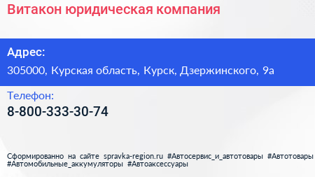 Витакон, юридическая компания по адресу 305000, Курская область, Курск, Дзержинского, 9а в дальнейшем Организация, размещена в следующих категориях: