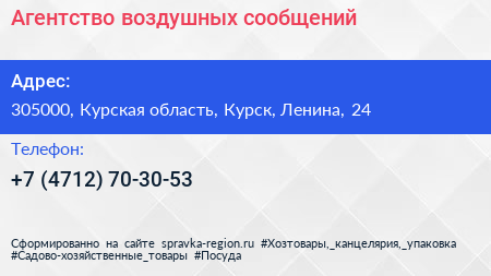 Агентство воздушных сообщений по адресу 305000, Курская область, Курск, Ленина, 24 в дальнейшем Организация, размещена в следующих категориях: