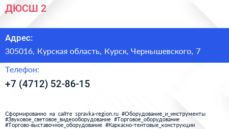 ДЮСШ №2 по адресу 305016, Курская область, Курск, Чернышевского, 7 в дальнейшем Организация, размещена в следующих категориях: