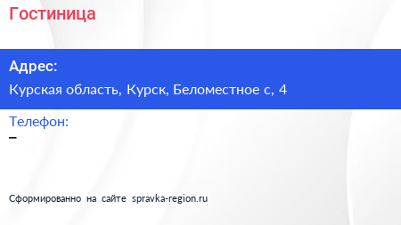 Гостиница по адресу Курская область, Курск, Беломестное с, 4 в дальнейшем Организация, размещена в следующих категориях: