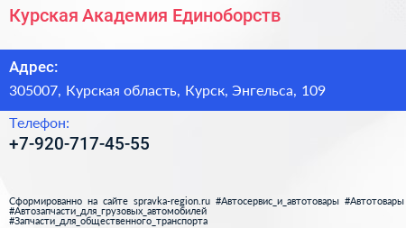 Курская Академия Единоборств по адресу 305007, Курская область, Курск, Энгельса, 109 в дальнейшем Организация, размещена в следующих категориях: