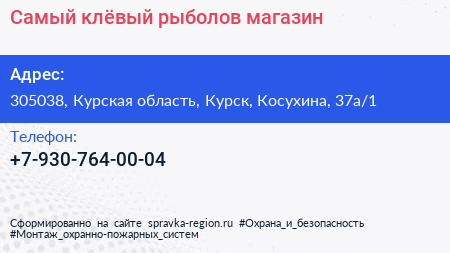 Самый клёвый рыболов, магазин по адресу 305038, Курская область, Курск, Косухина, 37а/1 в дальнейшем Организация, размещена в следующих категориях: