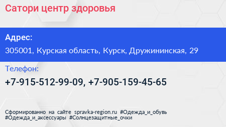Сатори, центр здоровья по адресу 305001, Курская область, Курск, Дружининская, 29 в дальнейшем Организация, размещена в следующих категориях: