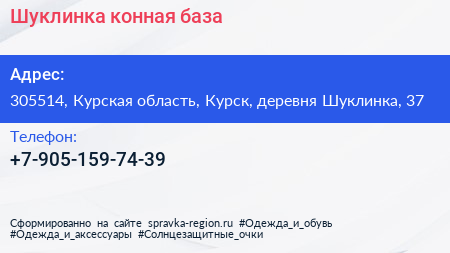 Шуклинка, конная база по адресу 305514, Курская область, Курск, деревня Шуклинка, 37 в дальнейшем Организация, размещена в следующих категориях: