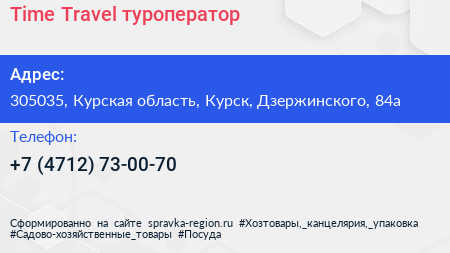 Time Travel, туроператор по адресу 305035, Курская область, Курск, Дзержинского, 84а в дальнейшем Организация, размещена в следующих категориях: