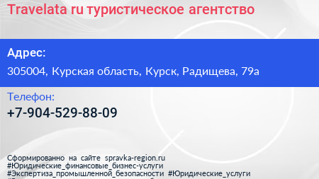 Travelata.ru, туристическое агентство по адресу 305004, Курская область, Курск, Радищева, 79а в дальнейшем Организация, размещена в следующих категориях: