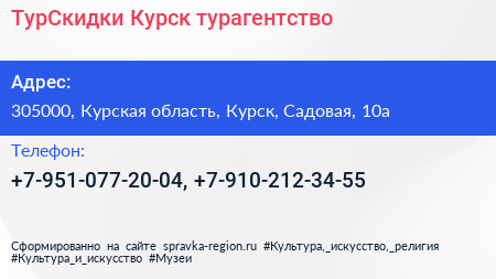 ТурСкидки Курск, турагентство по адресу 305000, Курская область, Курск, Садовая, 10а в дальнейшем Организация, размещена в следующих категориях: