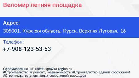 Веломир, летняя площадка по адресу 305001, Курская область, Курск, Верхняя Луговая, 16 в дальнейшем Организация, размещена в следующих категориях: