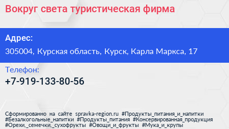 Вокруг света, туристическая фирма по адресу 305004, Курская область, Курск, Карла Маркса, 17 в дальнейшем Организация, размещена в следующих категориях: