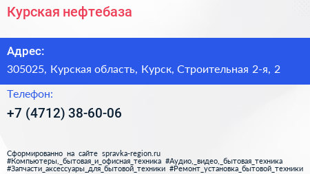 Курская нефтебаза по адресу 305025, Курская область, Курск, Строительная 2-я, 2 в дальнейшем Организация, размещена в следующих категориях: