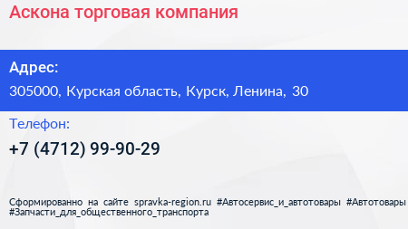 Аскона, торговая компания по адресу 305000, Курская область, Курск, Ленина, 30 в дальнейшем Организация, размещена в следующих категориях: