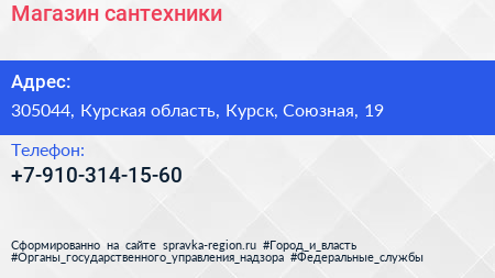 Магазин сантехники по адресу 305044, Курская область, Курск, Союзная, 19 в дальнейшем Организация, размещена в следующих категориях: