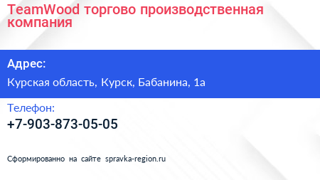 TeamWood, торгово-производственная компания по адресу Курская область, Курск, Бабанина, 1а в дальнейшем Организация, размещена в следующих категориях: