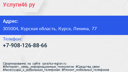 Услуги46.ру по адресу 305004, Курская область, Курск, Ленина, 77 в дальнейшем Организация, размещена в следующих категориях: