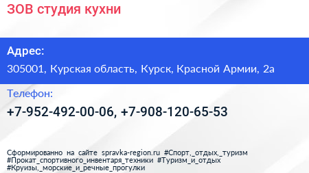 ЗОВ, студия кухни по адресу 305001, Курская область, Курск, Красной Армии, 2а в дальнейшем Организация, размещена в следующих категориях: