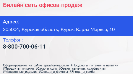 Билайн, сеть офисов продаж по адресу 305004, Курская область, Курск, Карла Маркса, 10 в дальнейшем Организация, размещена в следующих категориях: