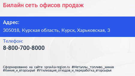 Билайн, сеть офисов продаж по адресу 305018, Курская область, Курск, Харьковская, 3 в дальнейшем Организация, размещена в следующих категориях: